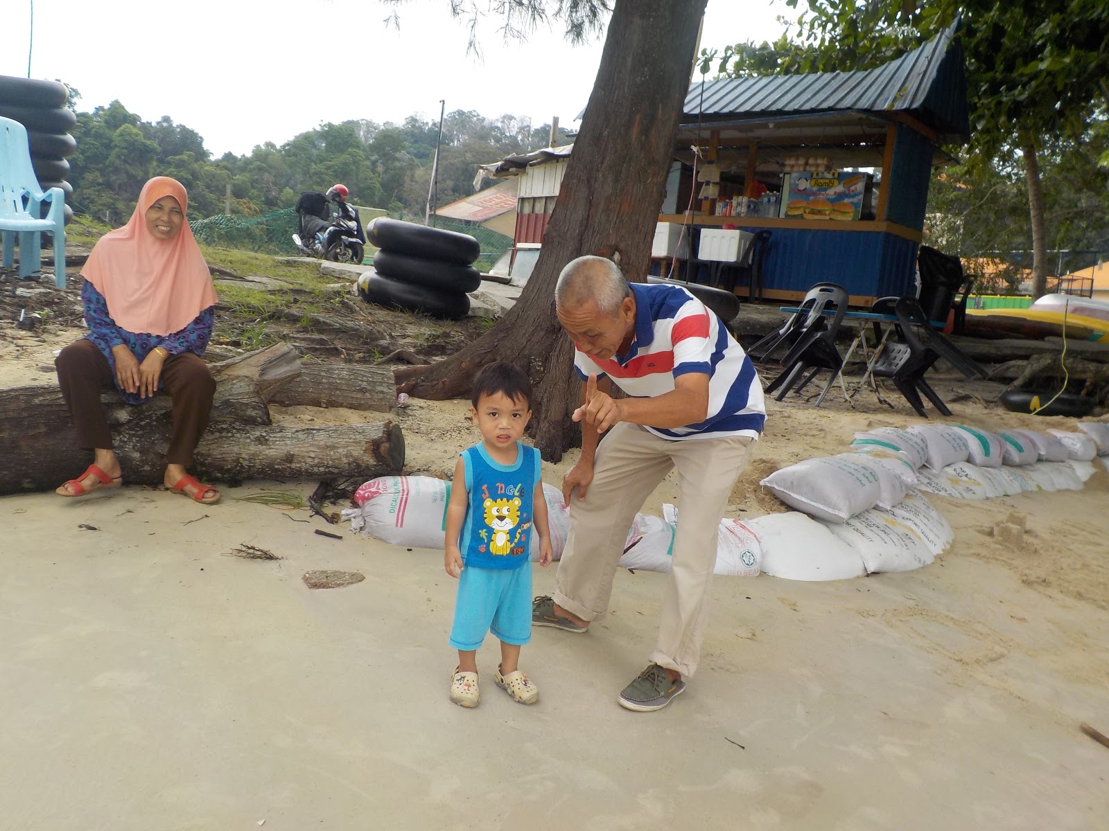Mak ayah tengok je dari pantai, malas nak main air.
